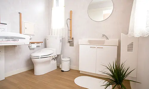広々とした空間設計で車椅子の方や高齢の方にも配慮されています。清潔で使いやすい、快適なトイレ環境です。